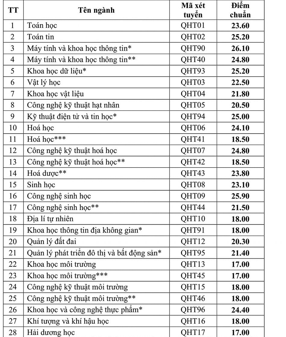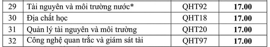 Tiếp theo, ngành Công nghệ Sinh học lấy 25,9 điểm. Một số ngành lấy điểm chuẩn thấp 17 như: Địa chất học, Quản lý tài nguyên và môi trường,…