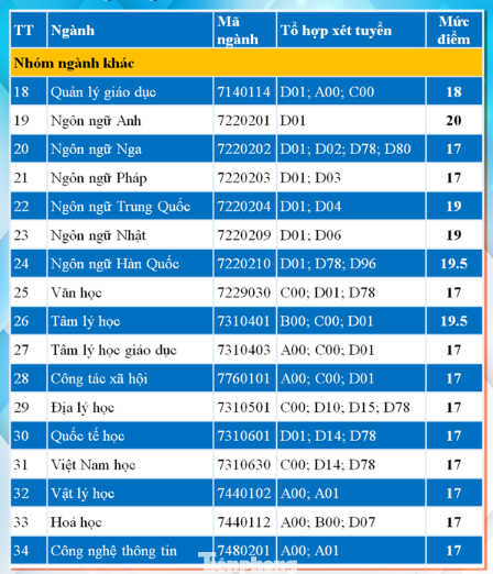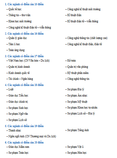 Các ngành ngoài sư phạm lấy điểm sàn từ 17- 20 điểm.