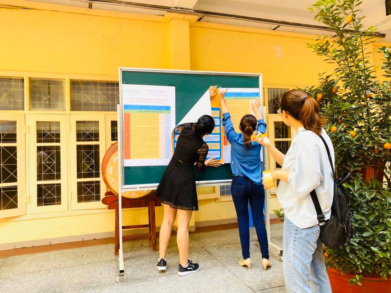 Thông báo về các nội quy phòng chống dịch được dán ở bảng tin nơi học sinh có thể dễ dàng quan sát.