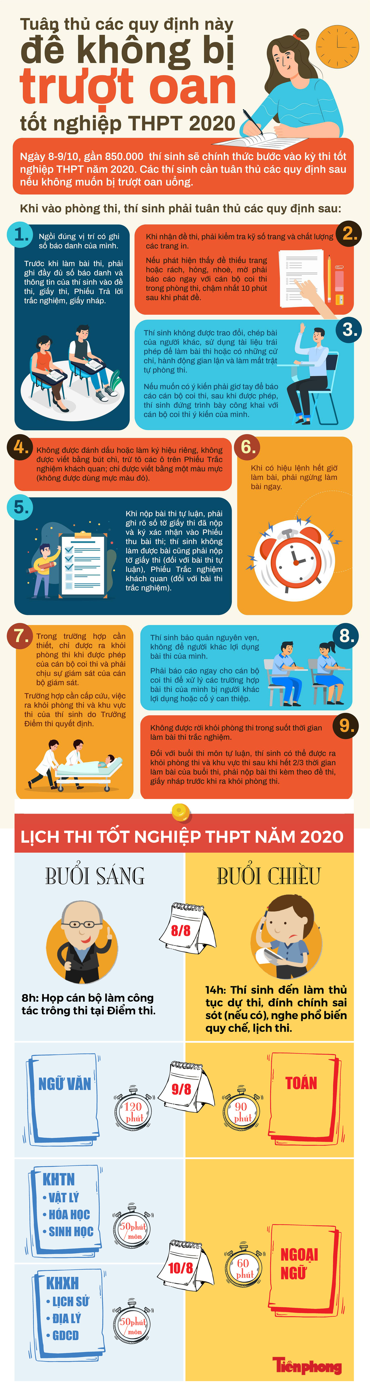 TPO - Ngày 8-9/10, gần 850.000 thí sinh sẽ chính thức bước vào kỳ thi tốt nghiệp thpt năm 2020. Các thí sinh cần tuân thủ các quy định sau nếu không muốn bị trượt oan uổng.
