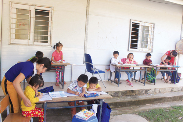 Thầy giáo Hắc Xuân Phúc, Hiệu trưởng Trường Tiểu học Trung Sơn, cho biết: Do không có phòng để các thầy, cô giáo tổ chức dạy kèm cho học sinh yếu, kém và bồi dưỡng học sinh khá, giỏi, nên ngoài giờ lên lớp chính khóa, các thầy cô giáo thường tận dụng hành lang lớp học hoặc dưới những tán cây quanh khu để tổ chức dạy phụ đạo cho học sinh. Nhờ vậy, chất lượng giáo dục nhà trường vẫn đảm bảo. Hiện nay, ngôi trường mới đang xây dựng, dự kiến, sẽ đưa vào sử dụng năm 2019.