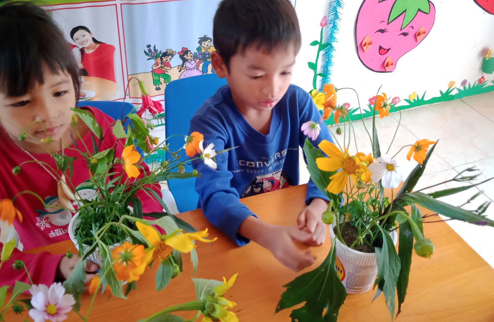 Sản phẩm từ hoa rừng của học sinh trường Mầm non Nhôn Mai (huyện Tương Dương, Nghệ An).