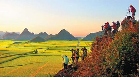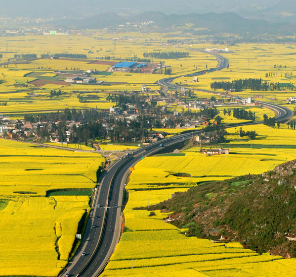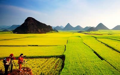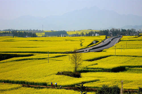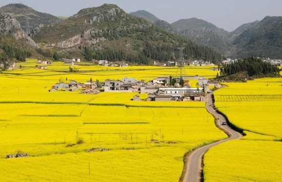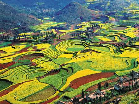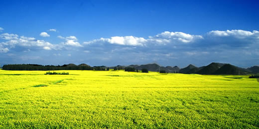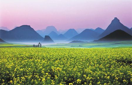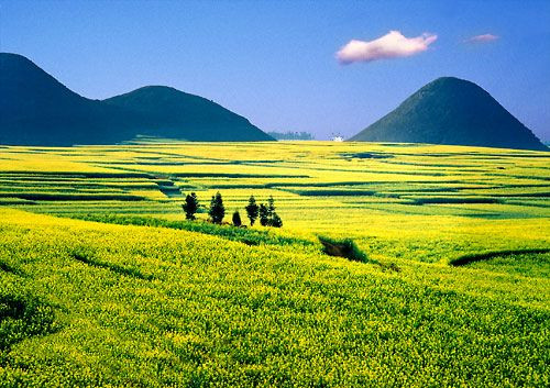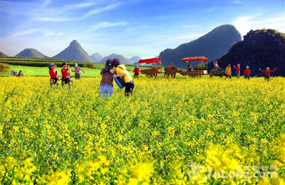 Đầu tháng ba, La Bình – một huyện thuộc tỉnh Vân Nam của Trung Quốc tràn ngập trong sắc vàng của hoa cải. Ở đây, trên cánh đồng, những thảm hoa cải trải rộng hàng ngàn mét vuông, cảm tưởng như màu vàng ấy cứ chảy mãi, chảy mãi về phía chân trời mà không có đường giới hạn.