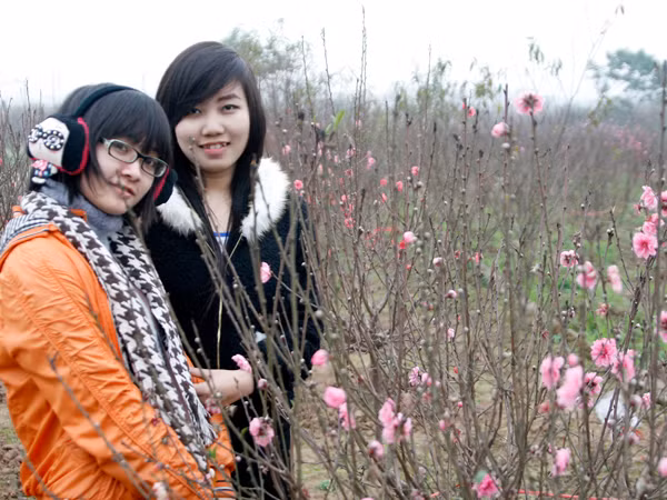 Năm nay thời tiết khá thuận lợi cho những nông dân trồng hoa, cây cảnh tại Quảng Bá. Nhờ thời tiết đẹp, những ruộng hoa đào, mận, cúc, cải, phong lan... rực rỡ sắc màu. Nhiều bạn trẻ, cả người nước ngoài, tới đây chụp ảnh.
