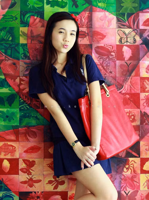 | Có vẻ cũng giống với cách tạo dáng của Bảo Trân, nhưng nhìn kỹ sẽ thấy Quỳnh Chi thích để bàn tay của mình một cách hờ hững và hơi "bối rối" một tẹo. |
