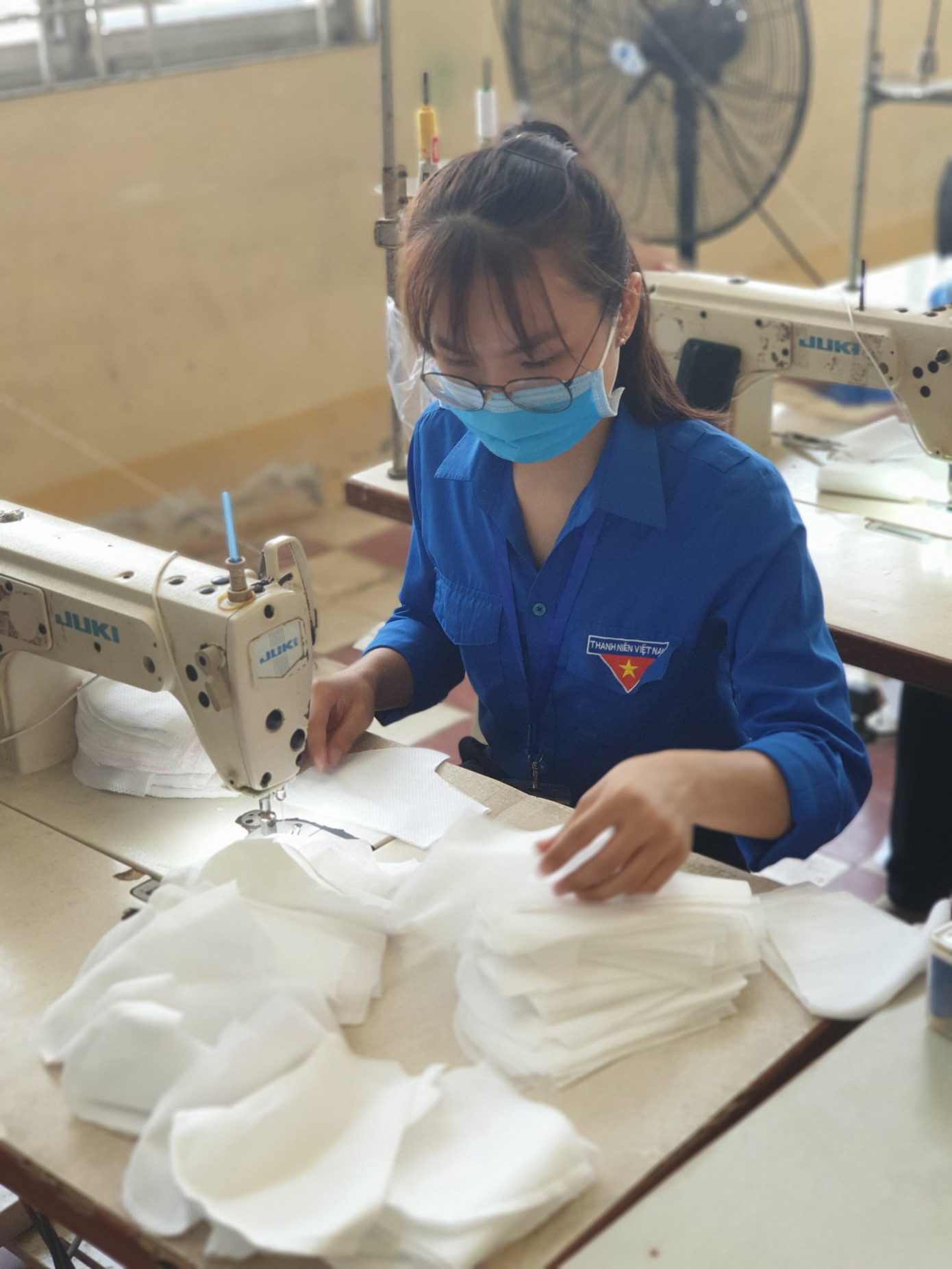Quang cảnh sinh viên may khẩu trang phòng dịch