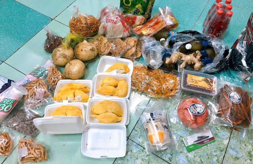 Rất nhiều đồ ăn thực phẩm được người thân gửi từ bên ngoài vào cho những người đang cách ly ở đây.