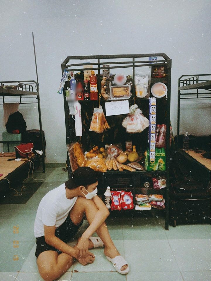 "Mỗi ngày trong phòng sẽ có 1 bạn được tiếp tế hàng hoá từ người thân nên em gom lại mở cửa hàng tạp hoá luôn mấy khi kinh doanh mà không cần bỏ vốn. Tạp hoá Cô Vy mại zô. Mai em nhờ gửi vô 4 cái bánh xe gắn vô giường đẩy đi bán dạo." - Chú thích "lầy lội" của Việt Linh khiến dân mạng cười ngất.