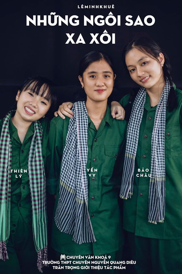 Tác giả của bộ ảnh kỷ yếu độc lạ này là bạn Sơn Đoàn. Các bạn học sinh lớp chuyên Văn khoá 9 Trường THPT Chuyên Nguyễn Quang Diêu (Đồng Tháp) cũng rất đầu tư trang phục và hóa thân rất xuất sắc thành các nhân vật trong "vũ trụ văn học" nổi tiếng từ trong nước đến nước ngoài như: Tấm Cám, Chí Phèo, Vợ chồng A Phủ, Vợ nhặt, Số đỏ, Hai đứa trẻ, Cô bé bán diêm, Lọ Lem...