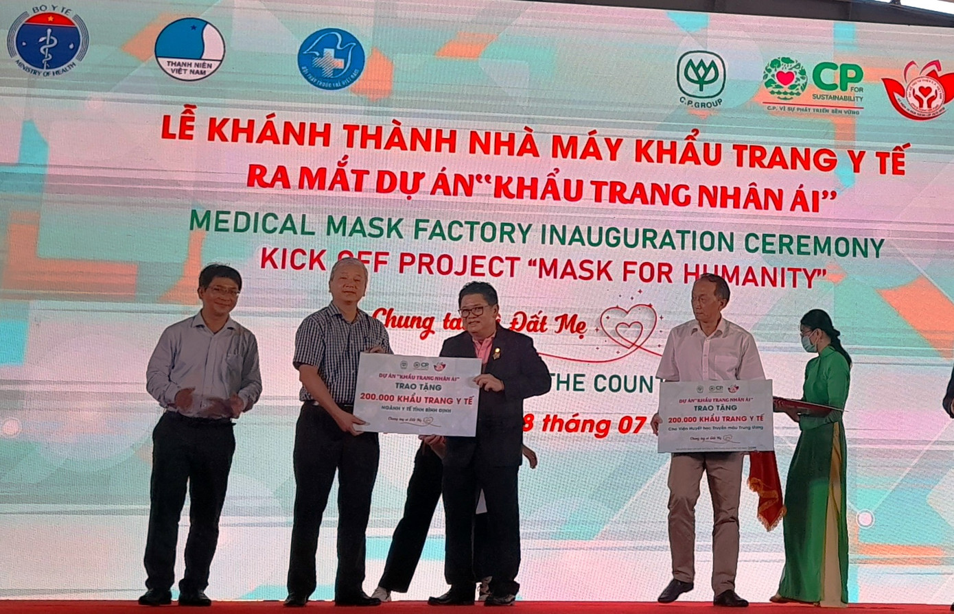 Sáng 28/7, tại Bình Định, Công ty CP Chăn nuôi C.P Việt Nam tổ chức lễ khánh thành Nhà máy khẩu trang y tế CPPC và ra mắt dự án “Khẩu trang Nhân ái” với mục tiêu hỗ trợ khẩn cấp 8 triệu chiếc khẩu trang y tế miễn phí cho cộng đồng.