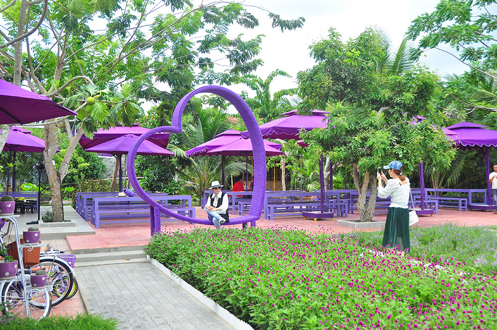 Chị Hồng Sen cho biết, cả hai vợ chồng đều yêu màu tím nên thường hay trang trí các vật dụng trong nhà đều có màu này. Khoảng 6 tháng nay, anh chị có ý tưởng liền bắt tay vào thực hiện cải tạo và làm mới nhiều không gian, tiểu cảnh vừa tái hiện khung cảnh Nam Bộ xưa và nhiều cảnh mới nhưng chủ đạo về màu sắc vẫn là màu tím.