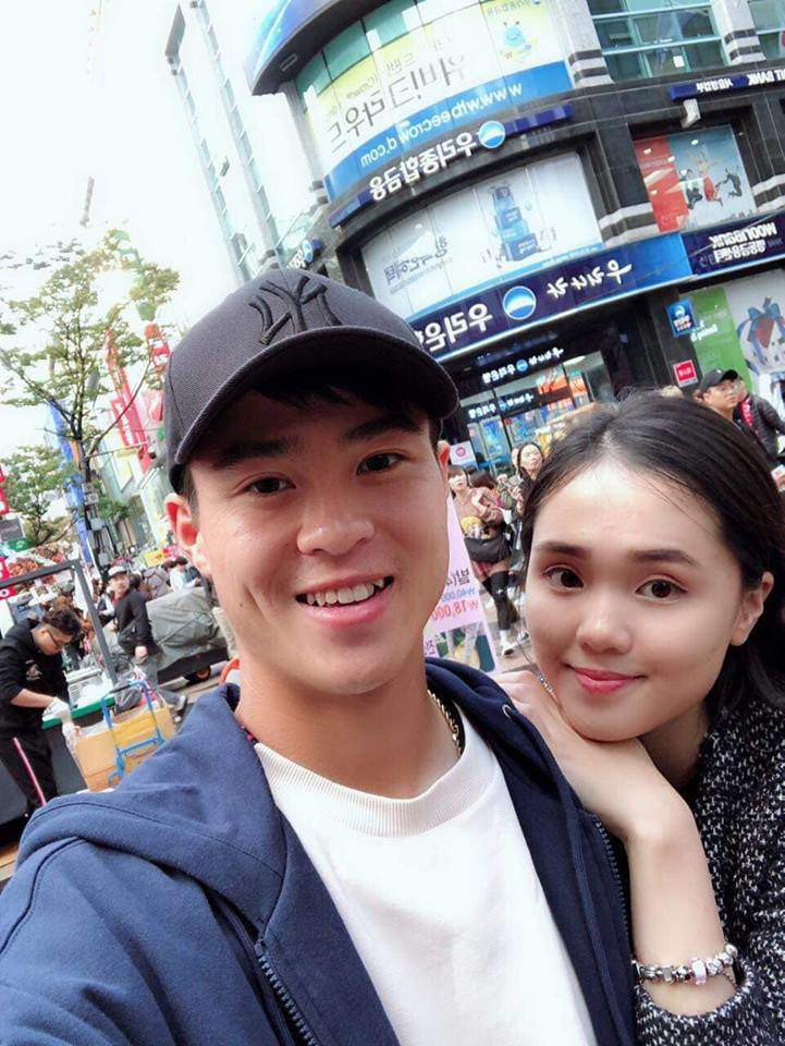 Duy Mạnh và bạn gái 9x có gu ăn mặc khá tương đồng. Chàng cầu thủ thường xuyên làm mẫu ảnh thời trang cùng người yêu.