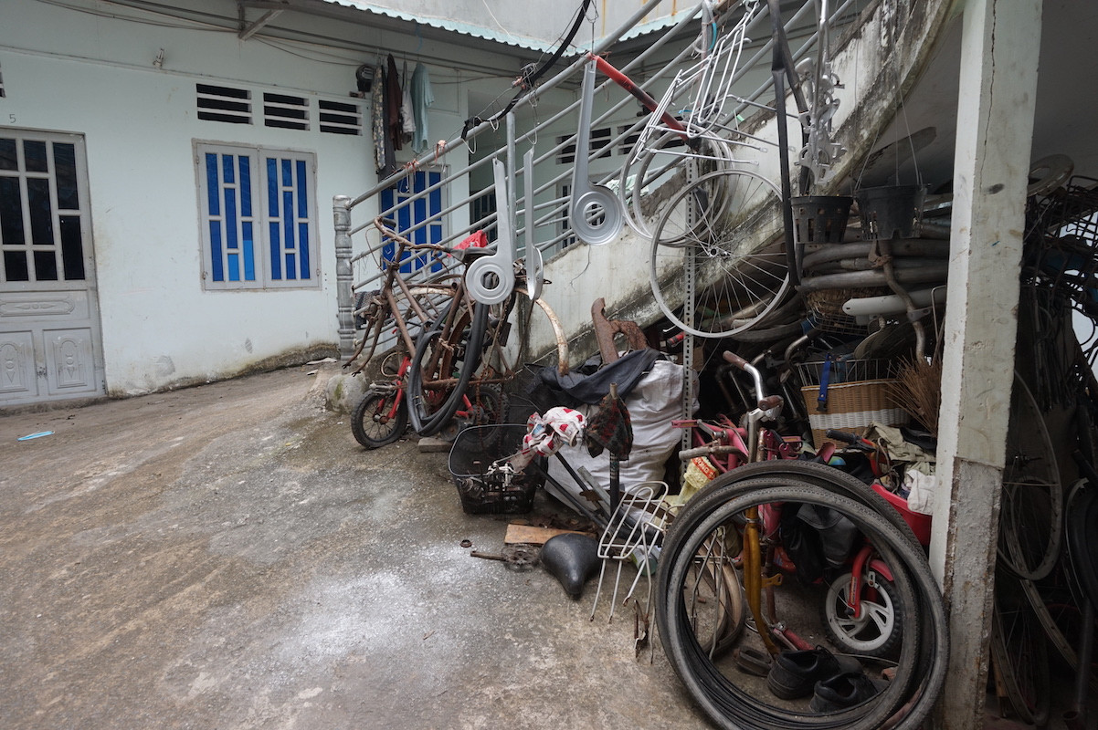 Xe đạp hư cũ chất đầy căn phòng trọ.