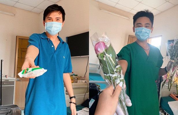 Cô được các bạn tặng nhiều quà bánh, được nhân viên y tế tặng hoa trong ngày 8/3.