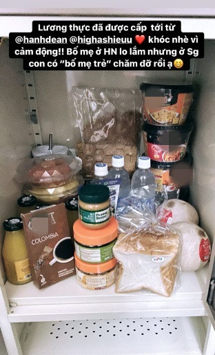 Châu Bùi được các bạn gửi rất nhiều đồ ăn vào.