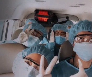 Châu Bùi cùng những người khác ngày đầu được đưa về khu cách ly với quần áo bảo hộ kín mít.