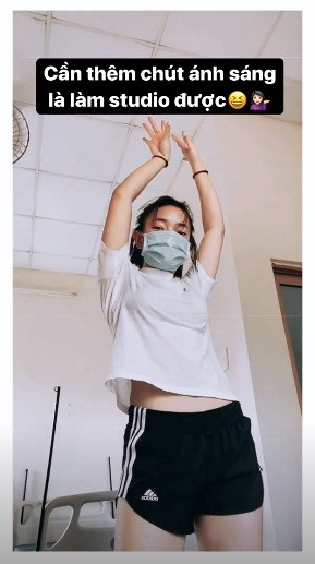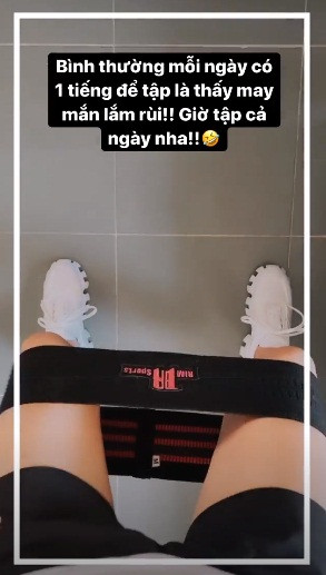 Châu Bùi tranh thủ tập thể dục nâng cao sức khỏe trong thời gian bị cách ly.