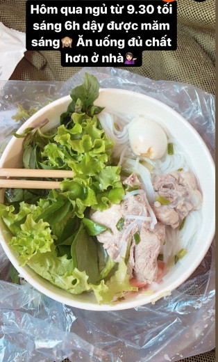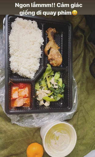 Nàng mẫu 9x chia sẻ ảnh bữa ăn và khen đồ ăn trong khu cách ly tập trung rất ngon.