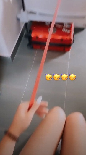 "May là lúc nào Châu cũng mang rất nhiều dây tập ở trong vali... bắt đầu tập tay thôi!"
