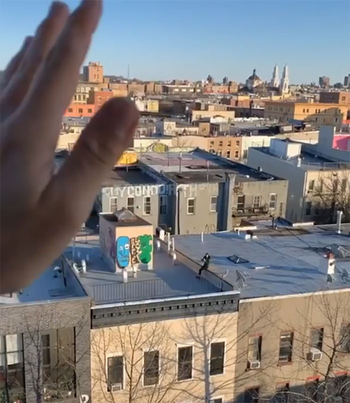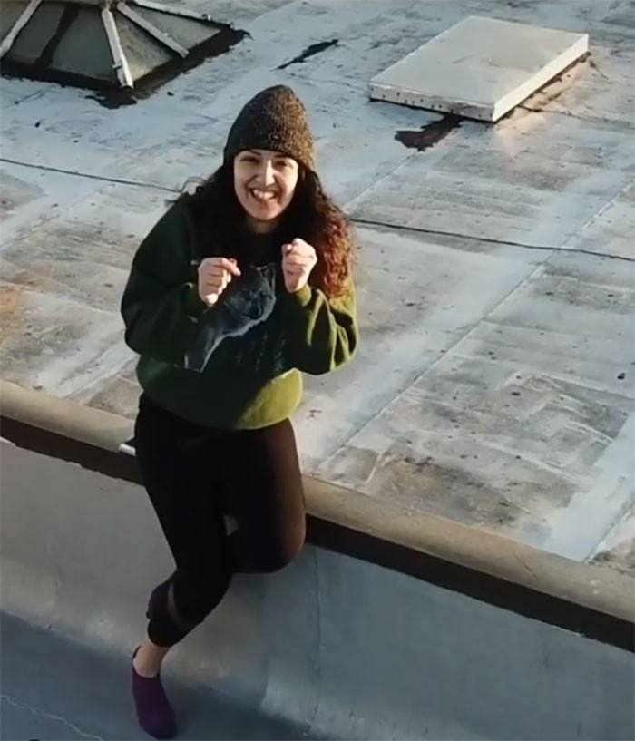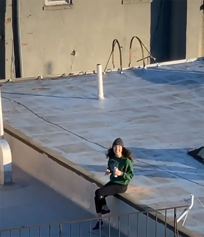 Cô gái trên nóc tòa nhà đối diện rất phấn khích