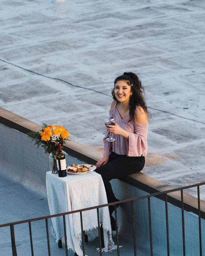 Hai người tuân thủ nguyên tắc cách ly "social distance" nhưng vẫn có bữa tối vô cùng lãng mạn.