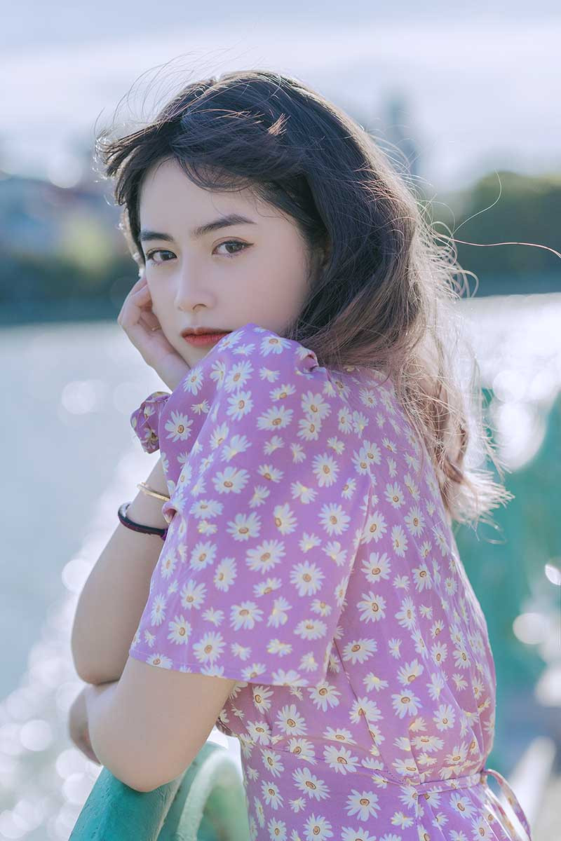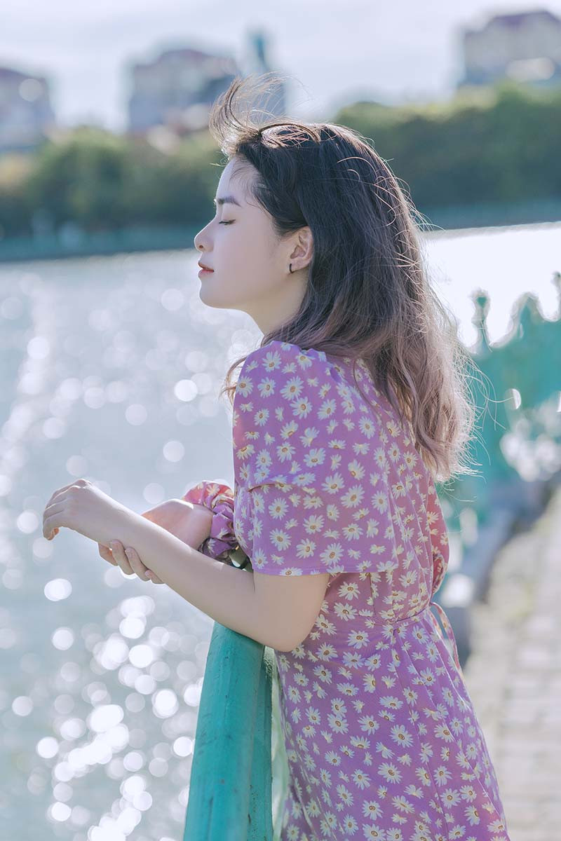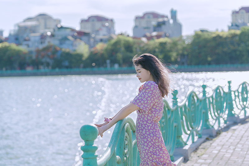 Cô bạn khoe góc nghiêng xinh đẹp bên hồ Tây rực nắng.