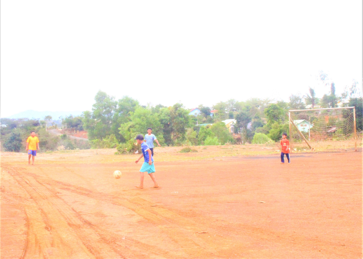 Ôm quả bóng tròn, nép mình bên hàng rào, K’Đình Tuyền (dân tộc Mạ, học lớp 3B, Trường TH- THCS Đắk P’lao) cùng nhóm bạn bẽn lẽn nhìn các anh chị đoàn viên, thanh niên xúc cát, bê gạch làm sân chơi. Biết tin sắp có sân chơi mới, K’Đình Tuyền không dấu nổi niềm vui: “Cháu rất thích chơi bóng đá. Sau giờ lên lớp, cháu cùng nhóm bạn tìm khu đất đã thu hoạch xong làm sân chơi. Nhiều lúc chạy theo quả bóng, cháu vấp phải hòn đá, gốc cây ngô, sắn, chân nứt toác, chảy máu rất đau nhưng không còn nơi nào khác”.
