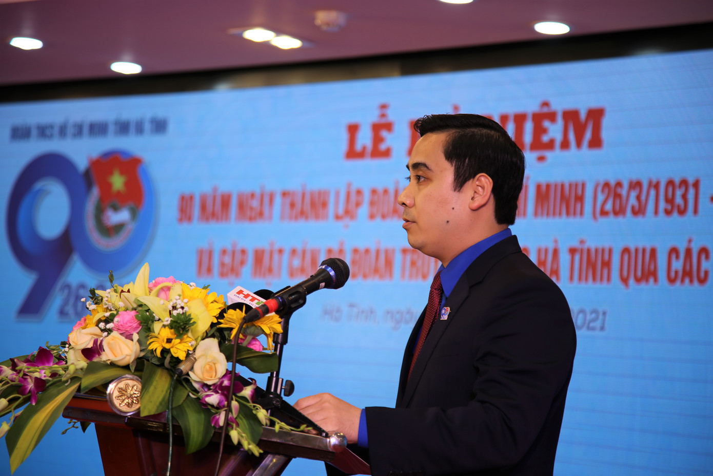Phát biểu tại buổi lễ, Bí thư Tỉnh đoàn Hà Tĩnh Lê Thành Đông chia sẻ, kế thừa truyền thống vẻ vang, nền tảng vững chắc từ thế hệ đi trước cùng với sự quan tâm của lãnh đạo, các cấp bộ Đoàn trong toàn tỉnh đã nỗ lực không ngừng trong công tác giáo dục chính trị, học và làm theo tư tưởng, đạo đức, phong cách Hồ Chí Minh. Chính vì thế công tác Đoàn và phong trào thanh niên tỉnh Hà Tĩnh được Trung ương Đoàn, lãnh đạo và nhân dân địa phương ghi nhận, đánh giá cao.