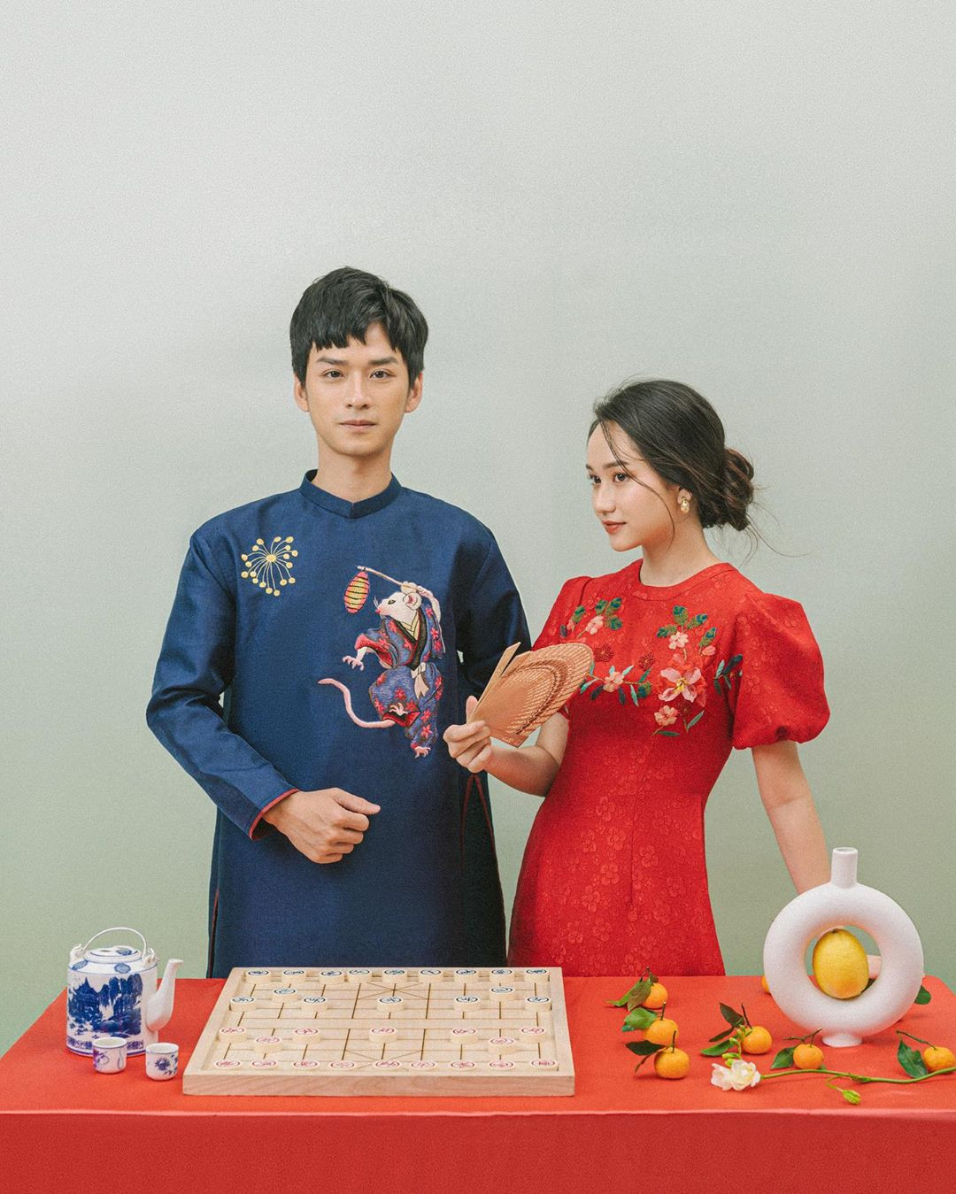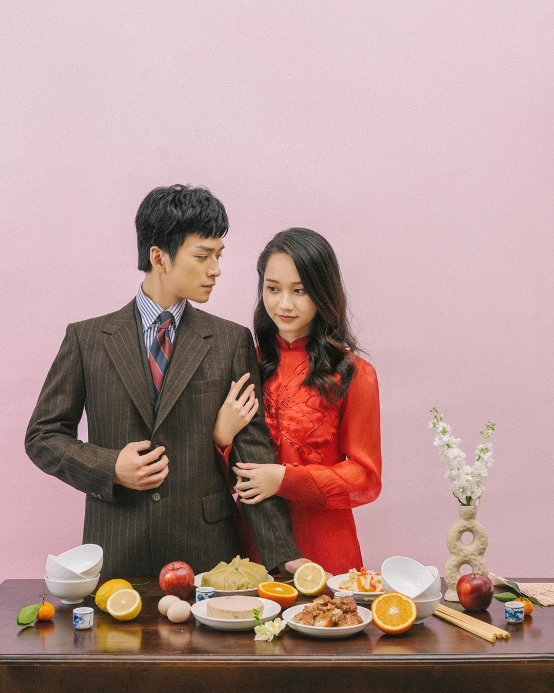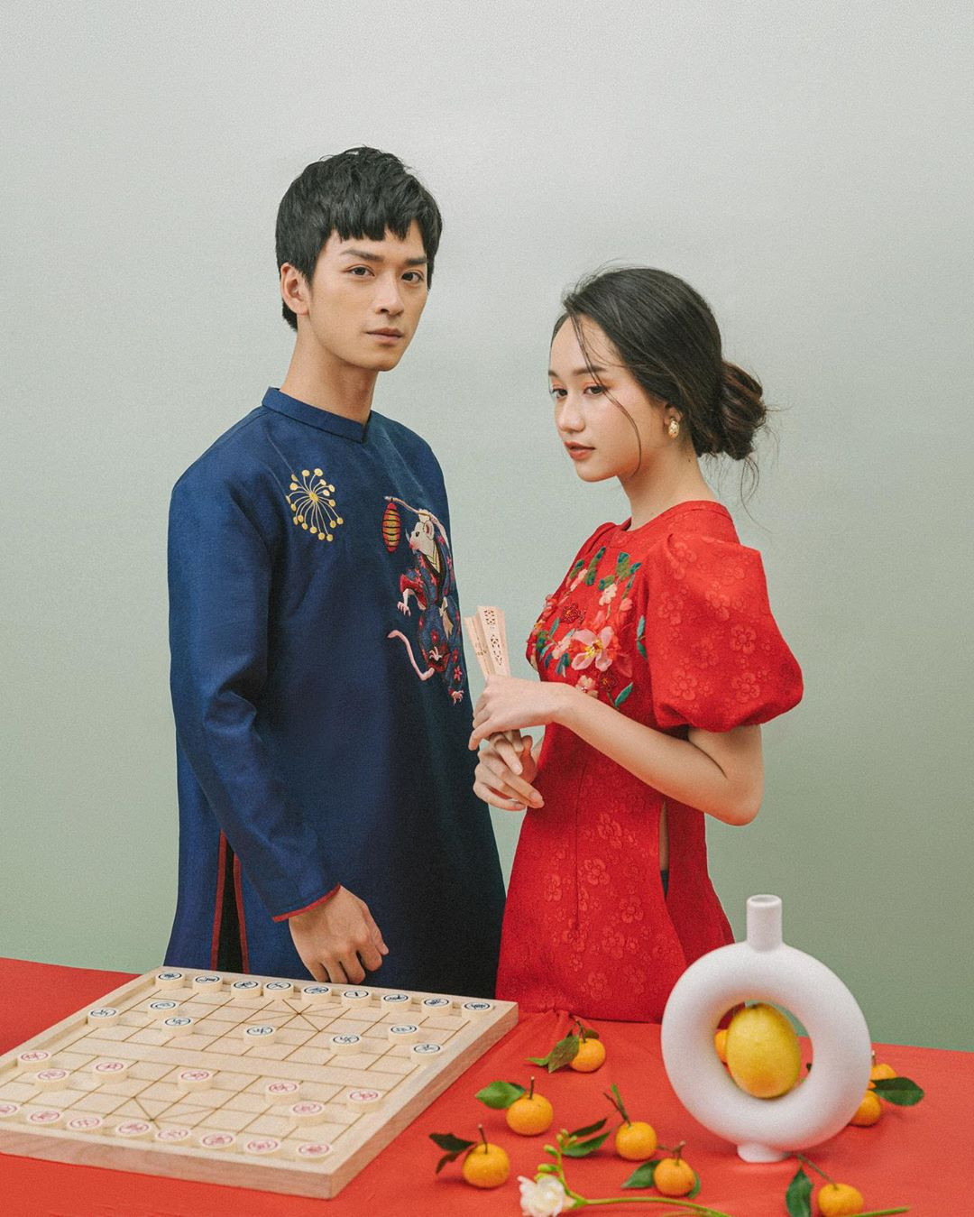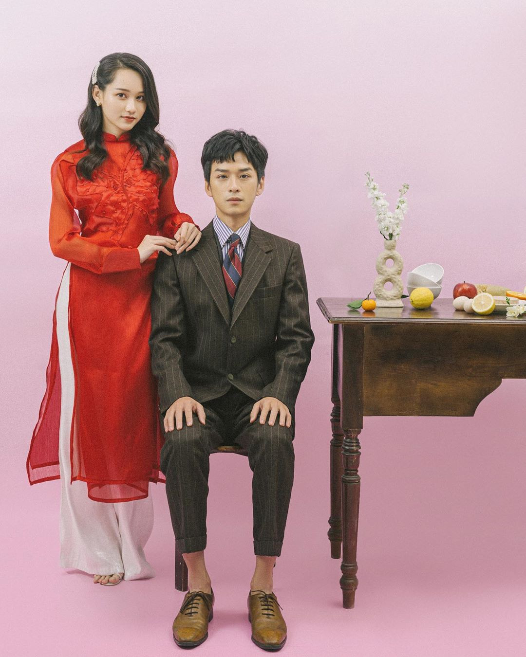 Cặp sao trẻ 9x rất đẹp đôi khi cùng diện áo dài cách tân.