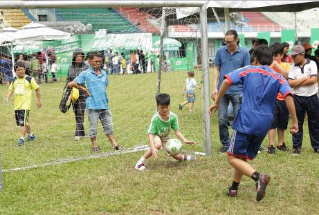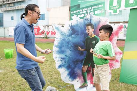 Chương trình đã thu hút hàng nghìn lượt phụ huynh và các em đến vui chơi và thử sức mình. Ống kính của chúng tôi đã kịp ghi nhận những hình ảnh đáng yêu của cha con nghệ sĩ Trần Lực cũng đến tham gia các hoạt động tại “Sân cỏ năng động MILO - Barcelona”.