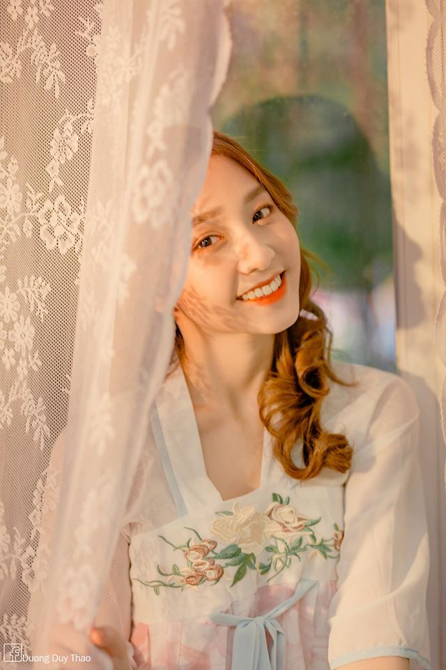 Nữ sinh này sở hữu gương mặt xinh đẹp với làn da trắng, đôi mắt trong veo và đặc biệt là nụ cười rạng rỡ luôn thường trực trên môi.
