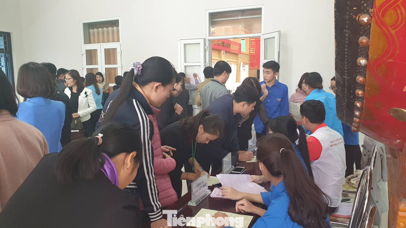 Đến hơn 8 giờ sáng, gần 1000 chỗ ngồi tại Nhà Văn hoá trung tâm huyện Duy Tiên đều kín ghế. Đoàn người lần lượt nhận phiếu tiến về phía sân khấu của Nhà văn hoá để khám, thử máu và hiến máu.