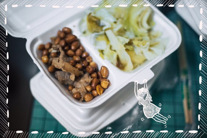 Những hộp cơm đơn giản nhưng có những món lâu không được ăn như lạc rang khiến Linh thích thú. "Canh rau luộc giúp vị giác và dạ dày trở nên nhẹ nhàng, bồng bềnh hơn bao giờ hết", mô tả.