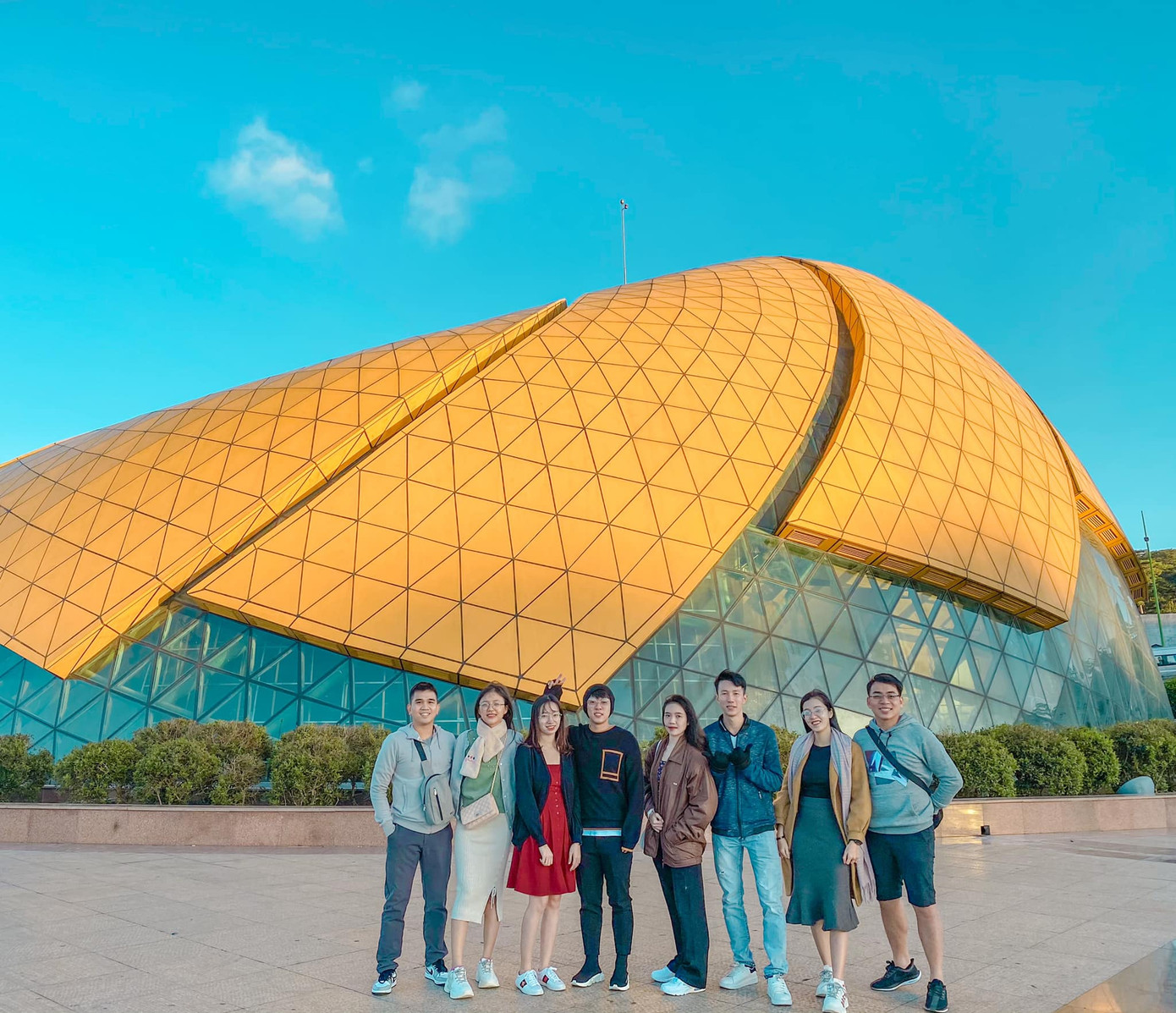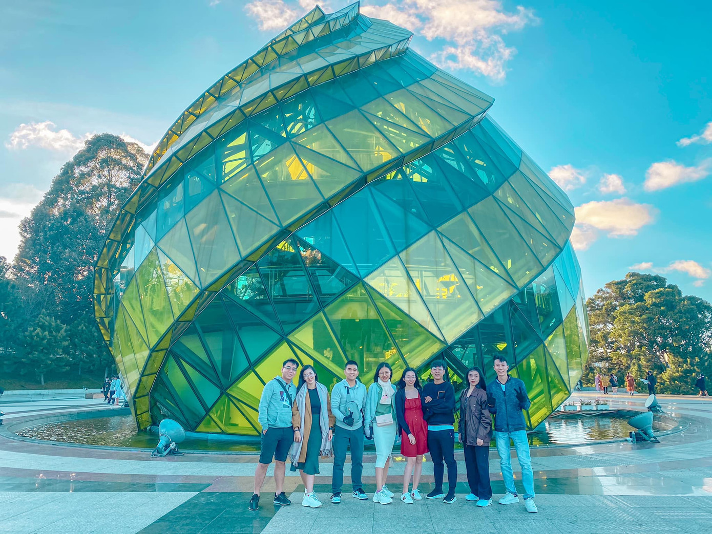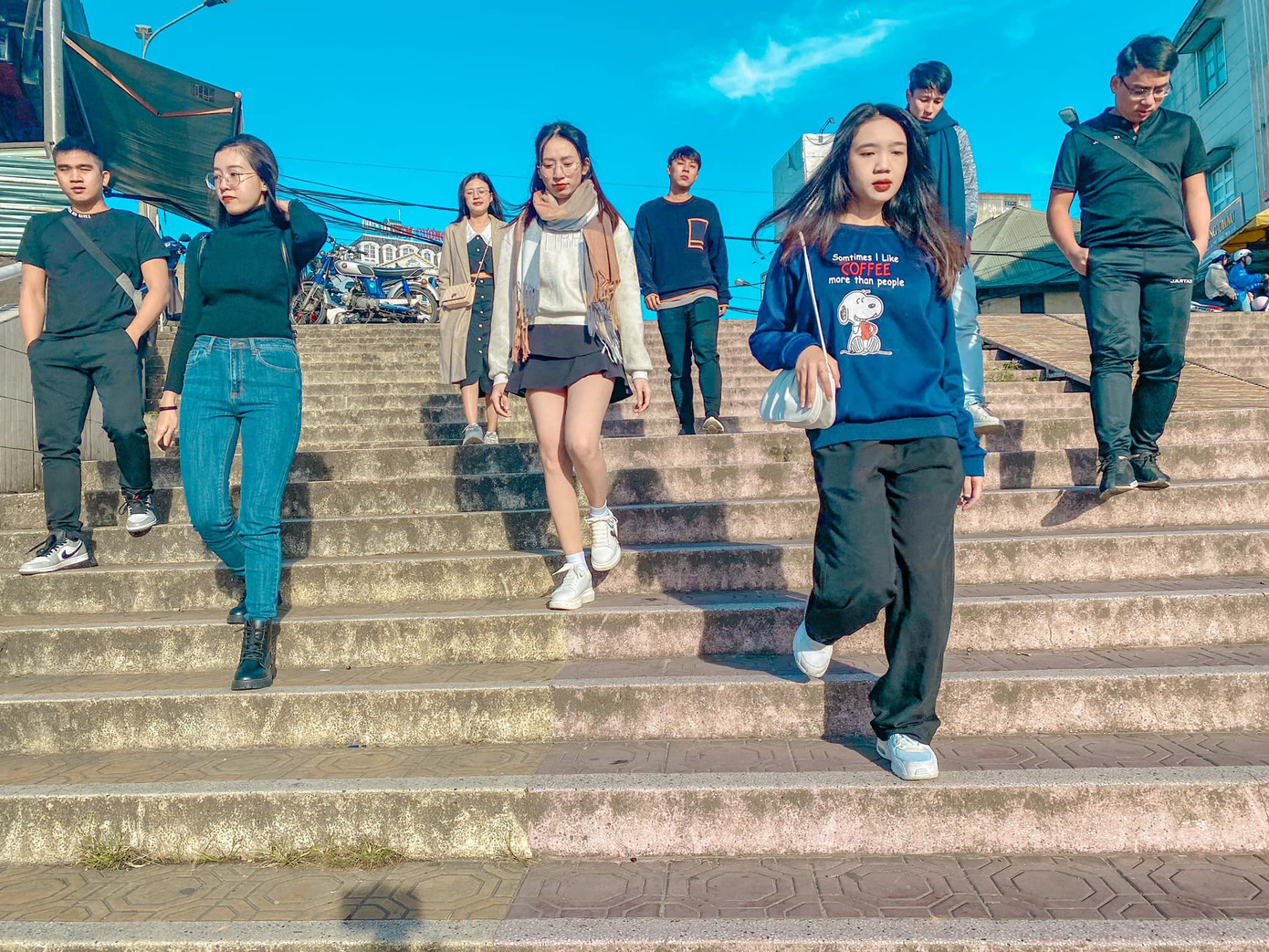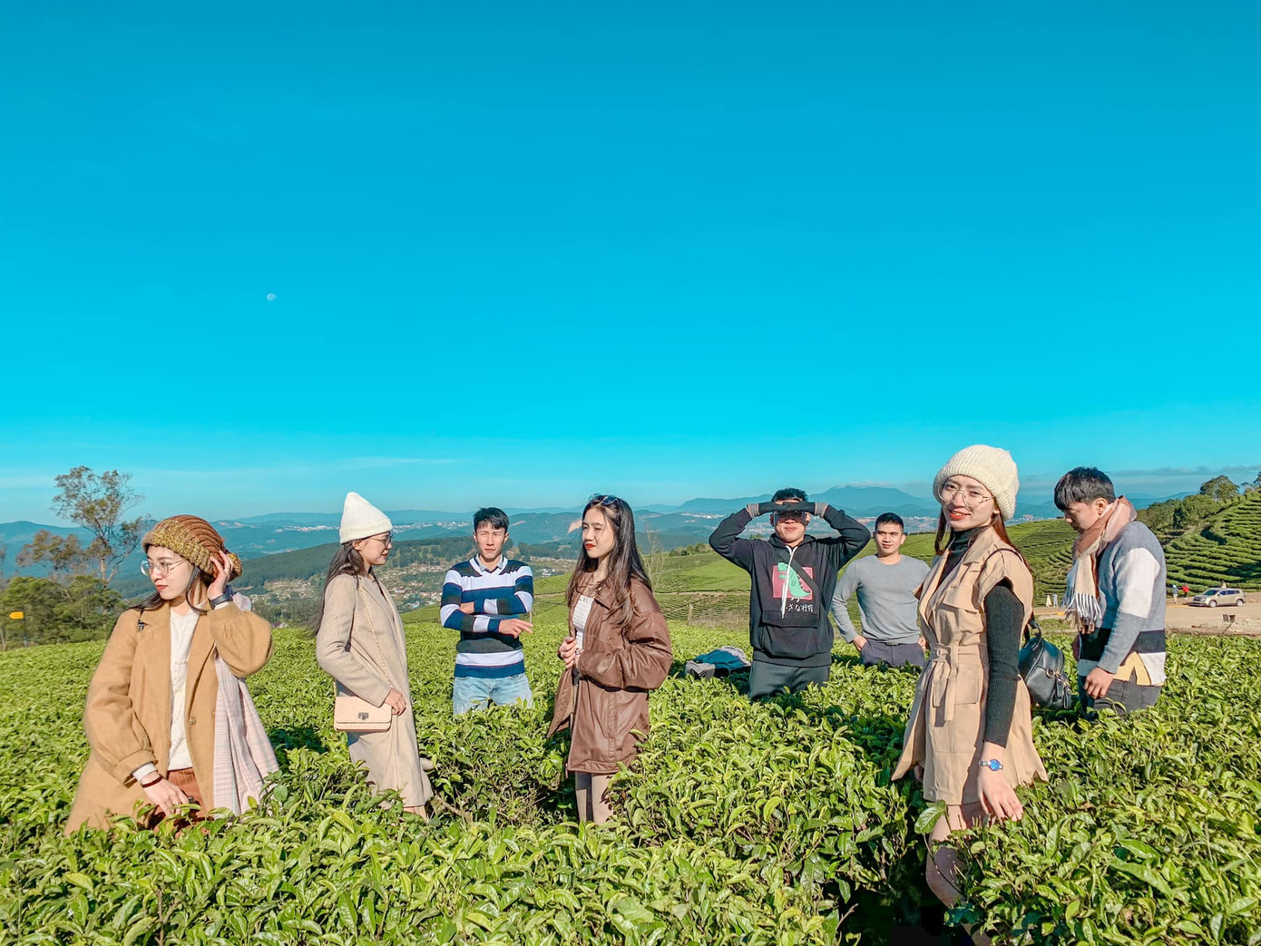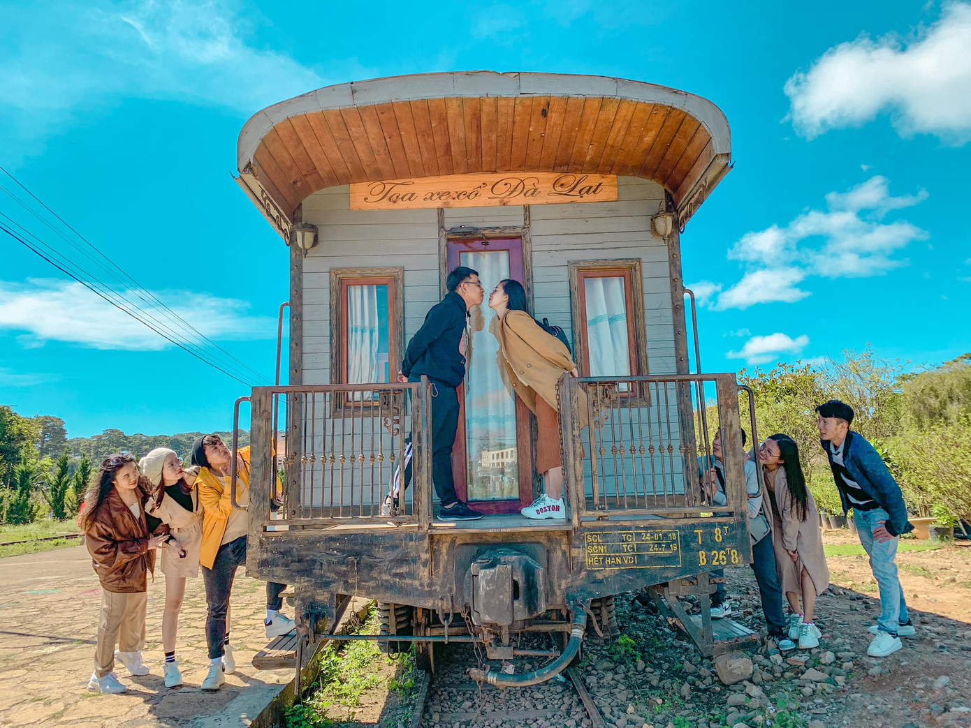 Trong suốt chuyến đi Đà Lạt 4 ngày, những nơi nhóm bạn đã check-in rất quen thuộc với các bạn trẻ như Quảng trường Lâm Viên, Đồi cỏ hồng, chợ Đà Lạt với view "Hồng Kông" cực chất, địa điểm săn mây ở Cầu Đất, đồi chè Cầu Đất, quán cafe Triệu Đoá Hồng, cafe Túi Mơ To, Ga Đà Lạt, Phân Viện sinh học Đà Lạt, Thiền Viện Trúc Lâm...