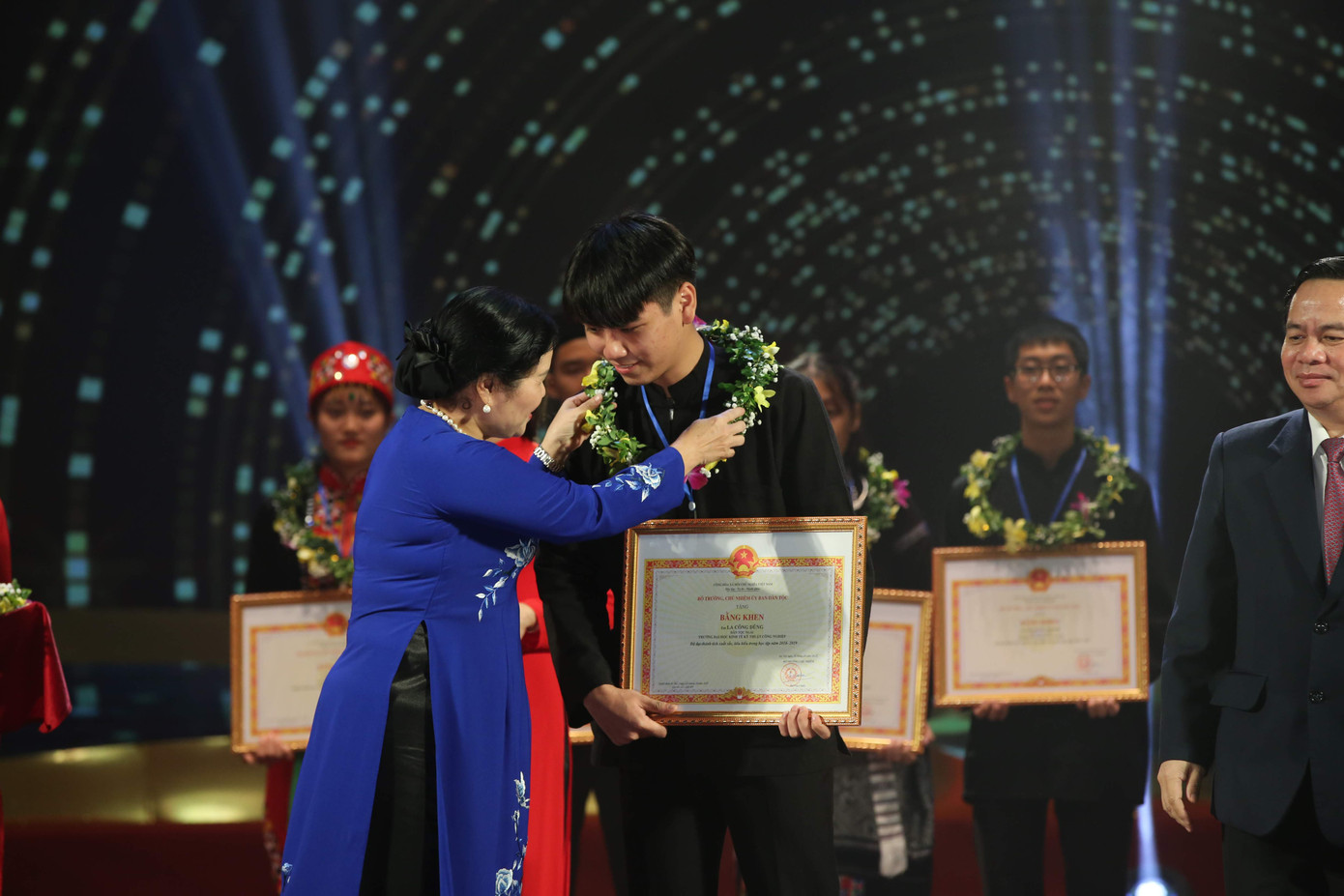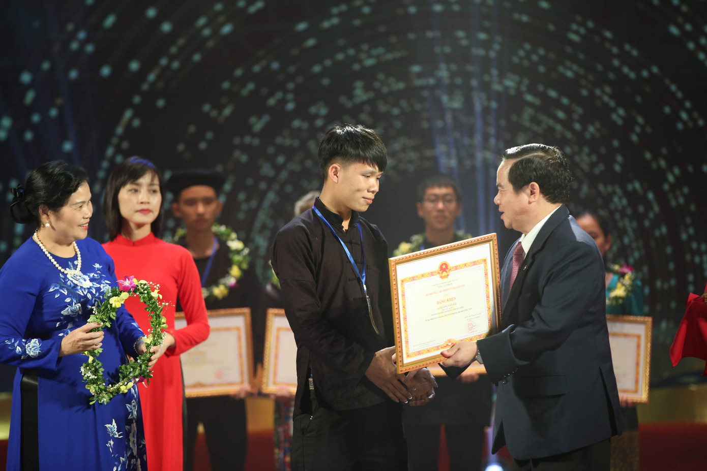Trong khuôn khổ Lễ tuyên dương học sinh, sinh viên, thanh niên dân tộc thiểu số tiêu biểu năm nay, Ban tổ chức đã chọn riêng ra 9 học sinh người dân tộc thiểu số rất ít người để trao thưởng.