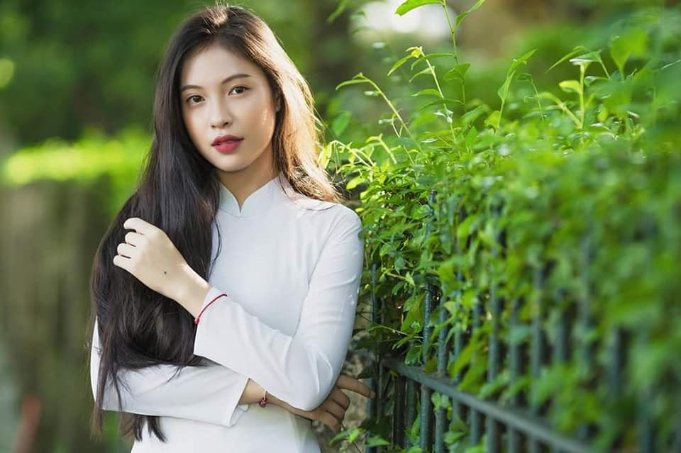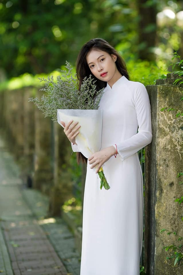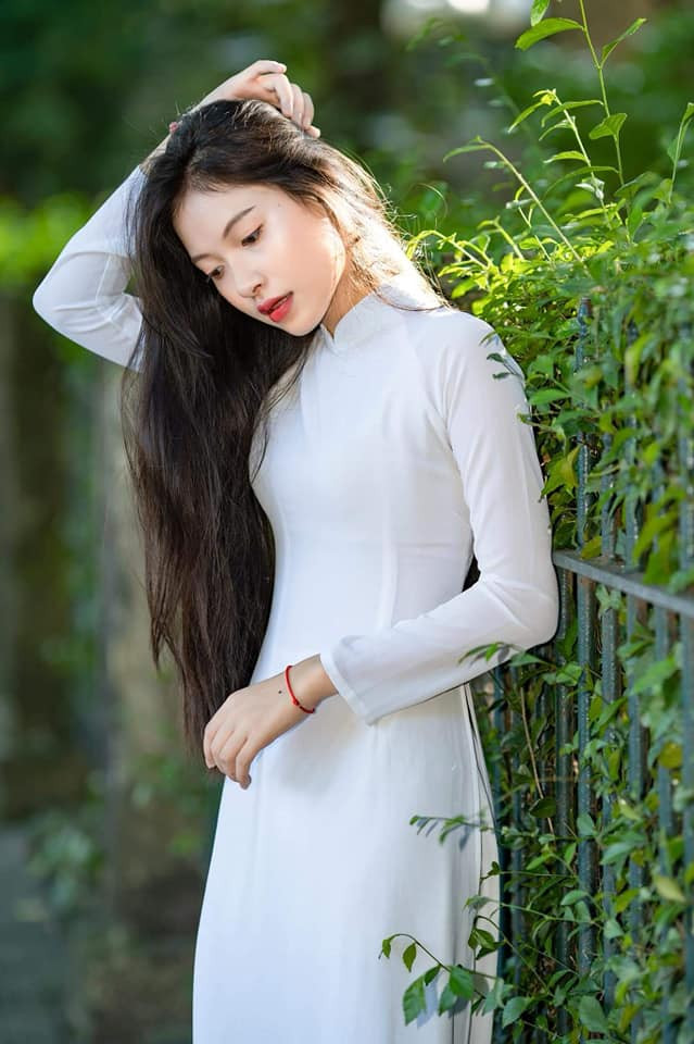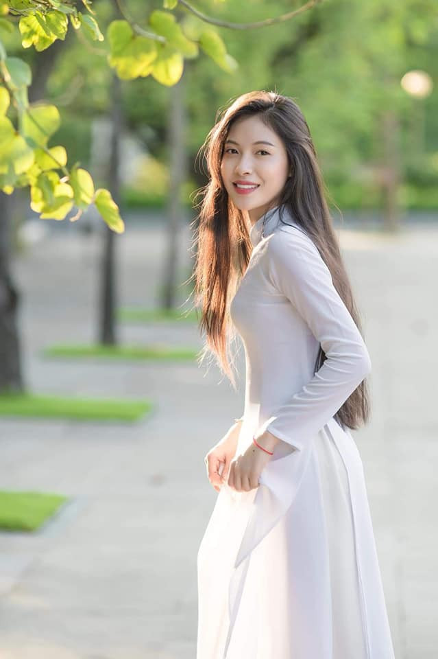 "Hot girl thẩm phán" đẹp trong trẻo nền nã với tà áo dài trắng tinh khôi.