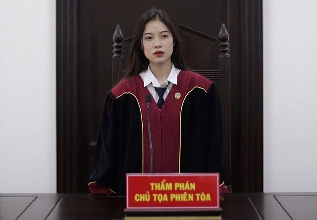 Thực chất, đây là bức ảnh được chụp khi nữ sinh đến nghe buổi diễn án của các sinh viên khác vào ngày 1/10/2019. Trang phục thẩm phán là Mỹ Nhi mượn để chụp hình trong một phiên tòa giả định.