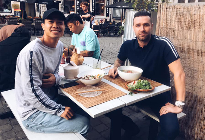 Cầu thủ Hoàng Đức tích cực tập thể dục thể thao đẩy lùi COVID cùng Nguyễn Đức Chiến và Đàm Tiến Dũng.