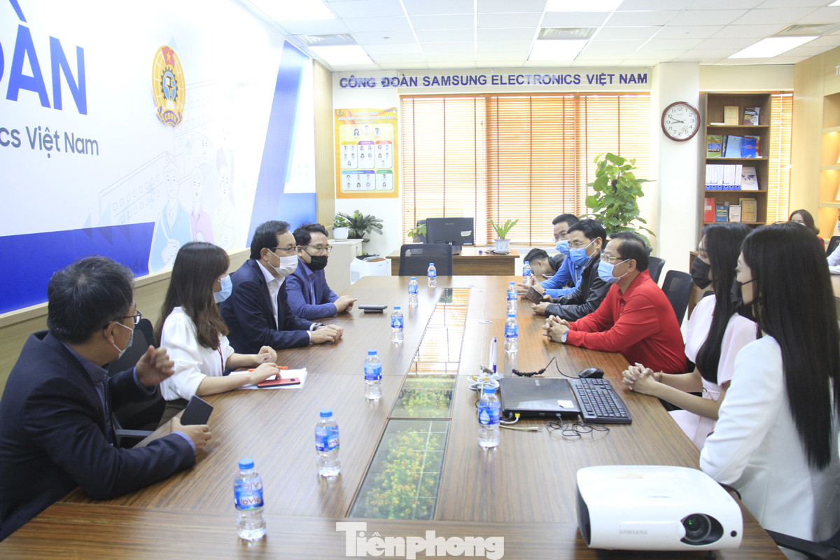 Các đại biểu chụp ảnh lưu niệm trong văn phòng Công đoàn Cty Samsung