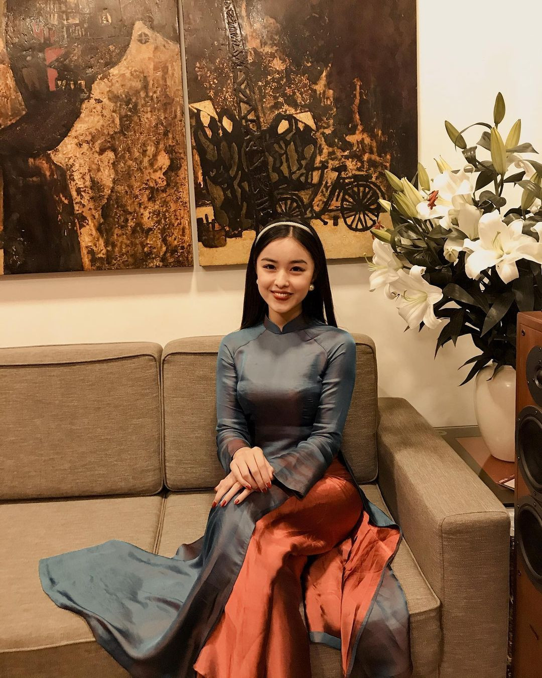 Sương Mai duyên dáng trong tà áo dài.