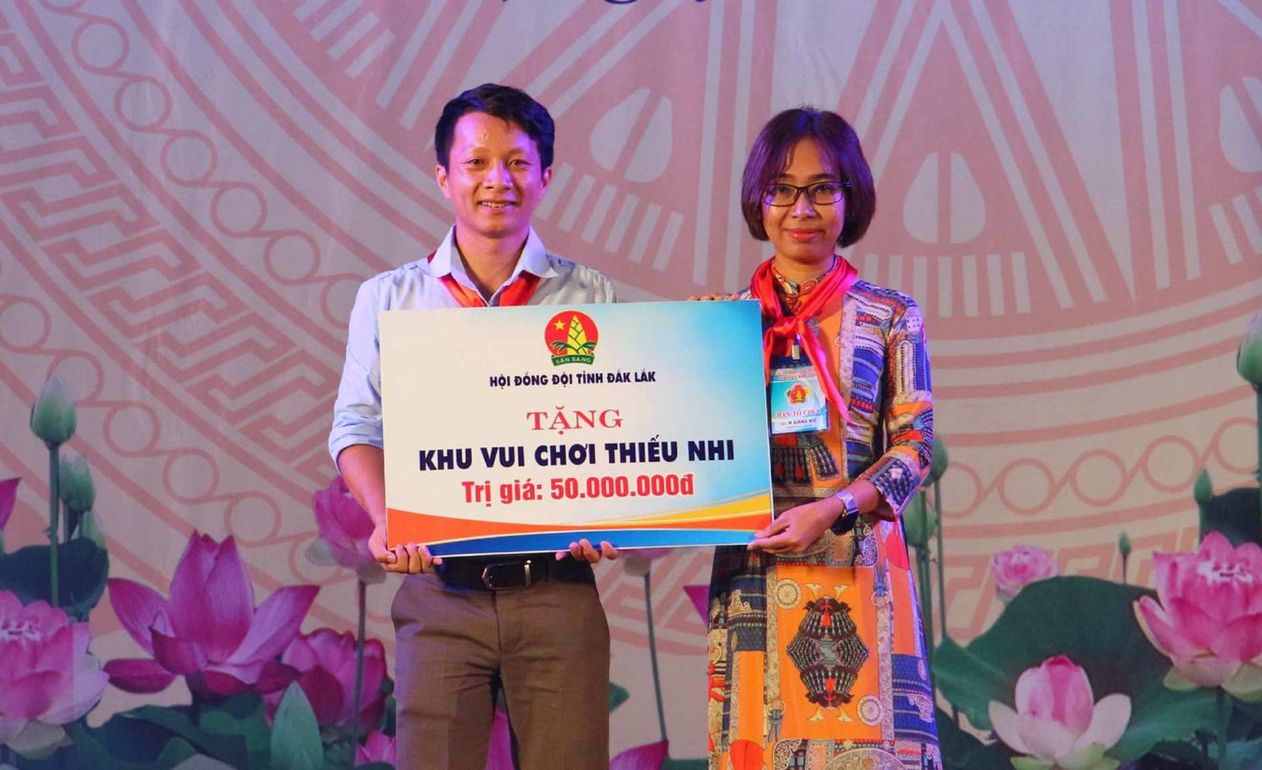 Nhân dịp này, Hội Đồng đội tỉnh tặng một khu vui chơi; trao tặng xe đạp, nhà khăn quàng đỏ cho các em đội viên có hoàn cảnh khó khăn.