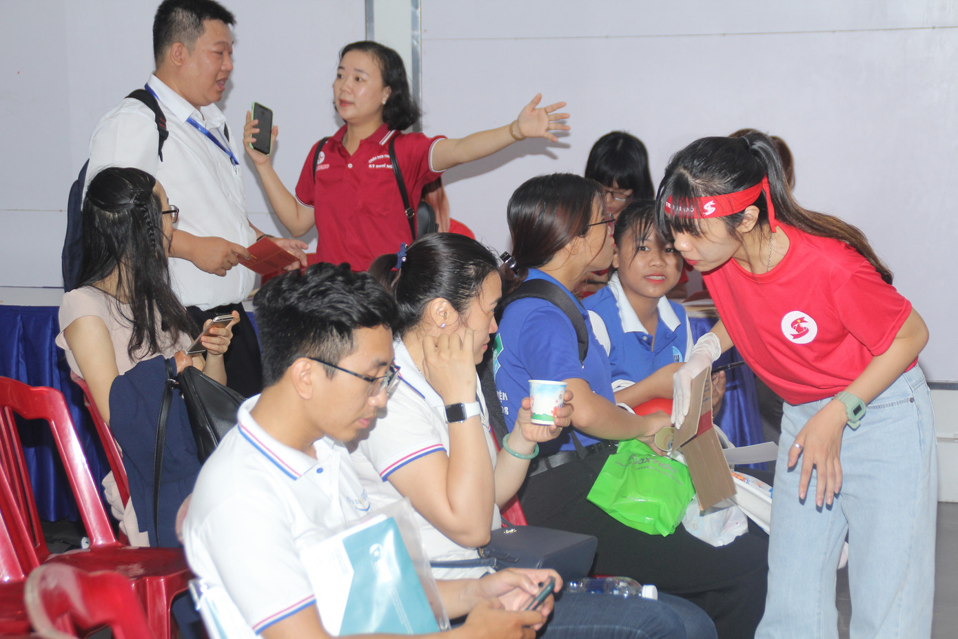 Đông đảo bạn trẻ tham gia chia sẻ giọt máu của mình với cộng đồng. Nhiều doanh nghiệp trên địa bàn TPHCM cũng vận động hàng chục cán bộ, công nhân viên của mình tham gia hiến máu
