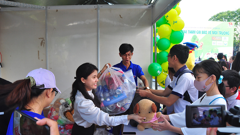 Đến với ngày hội, các em thiếu nhi có thể mang theo “rác” là các vật dụng trong gia đình như chai lọ nhựa, bịch nilon, giày, pin, đồ chơi điện tử, chai lọ, túi xách… bị hư hỏng để đổi lấy đồ chơi mới, bánh kẹo, nước uống, gấu bông, vé vào cổng khu vui chơi Tini world…