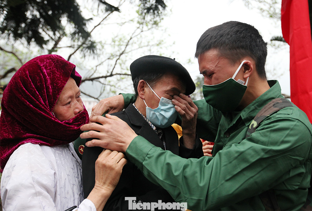 Bố mẹ các tân binh đến động viên và chia sẻ chúc các con lên đường may mắn.