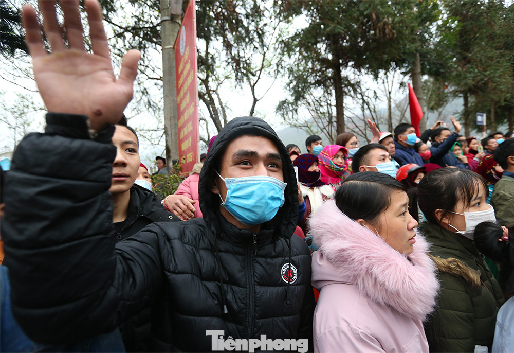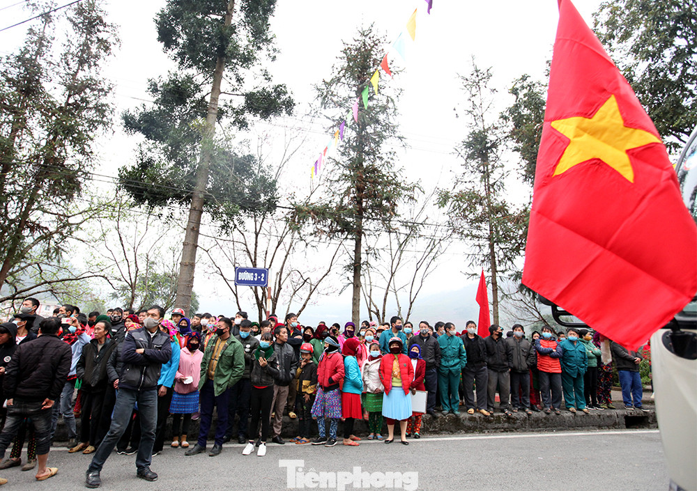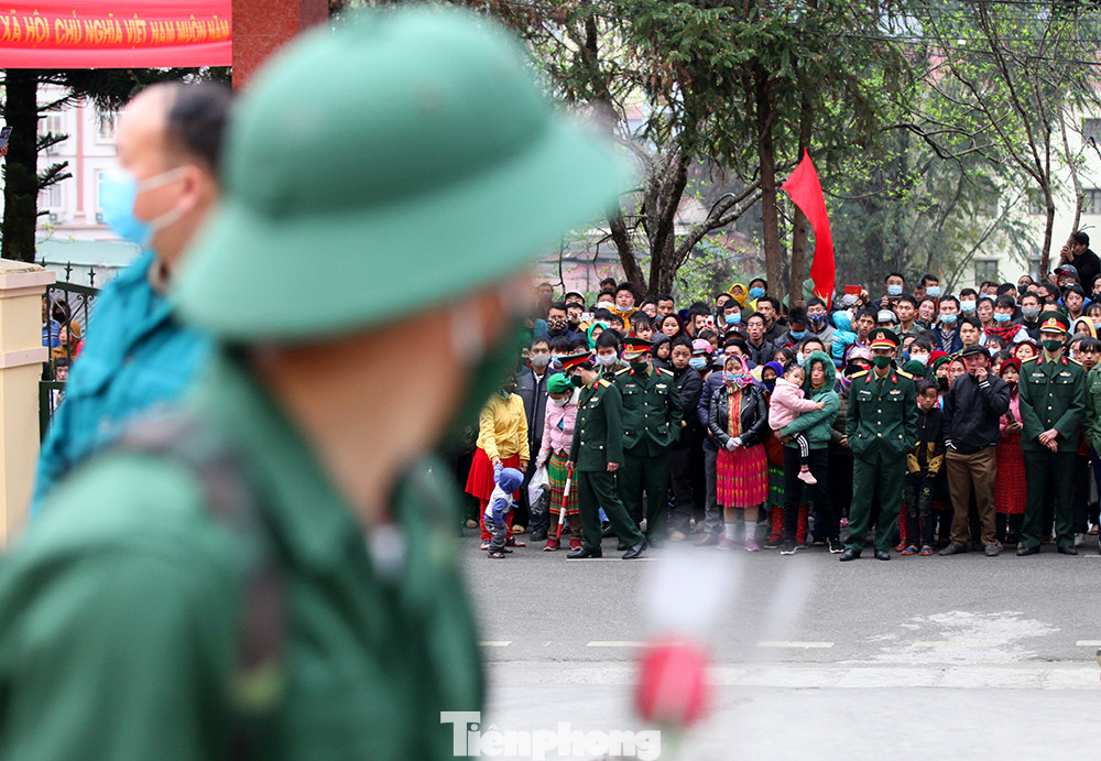Bên ngoài đường 3-2, trước cổng Bộ chỉ huy quân sự huyện Mèo Vạc, người thân các tân binh đứng dọc con đường.