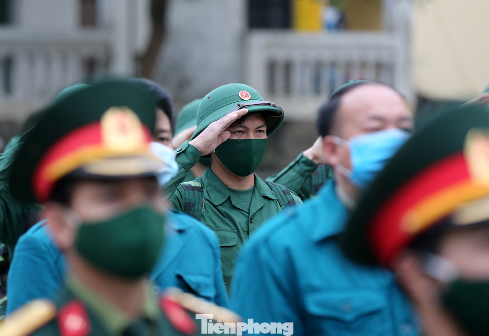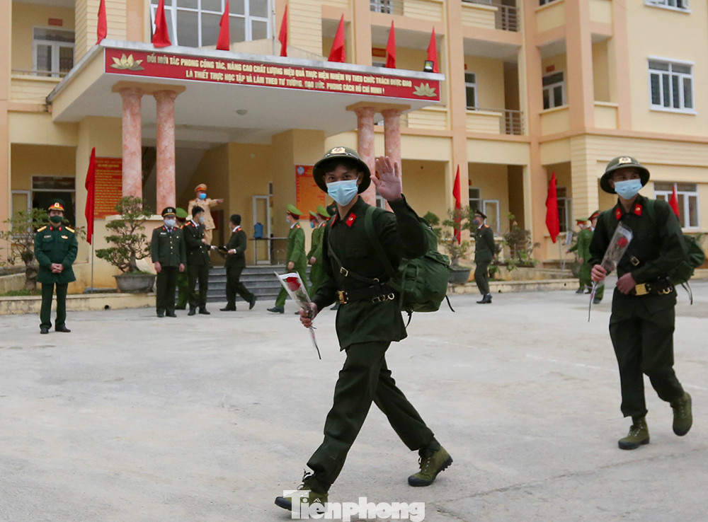 Chỉ huy điểm danh các tân binh trước khi lên xe về đơn vị