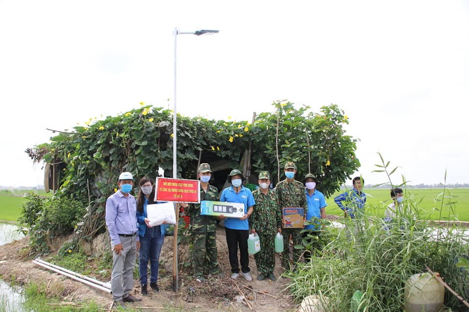 Đoàn công tác Tỉnh đoàn tặng 5 đèn năng lượng mặt trời chiếu sáng cho 5 chốt ở giữa đồng giúp chiến sỹ thuận tiện trong công tác phòng chống dịch COVID-19. Bên cạnh đó, ở mỗi nơi còn tặng khẩu trang, nước sát khuẩn khô, mì gói.