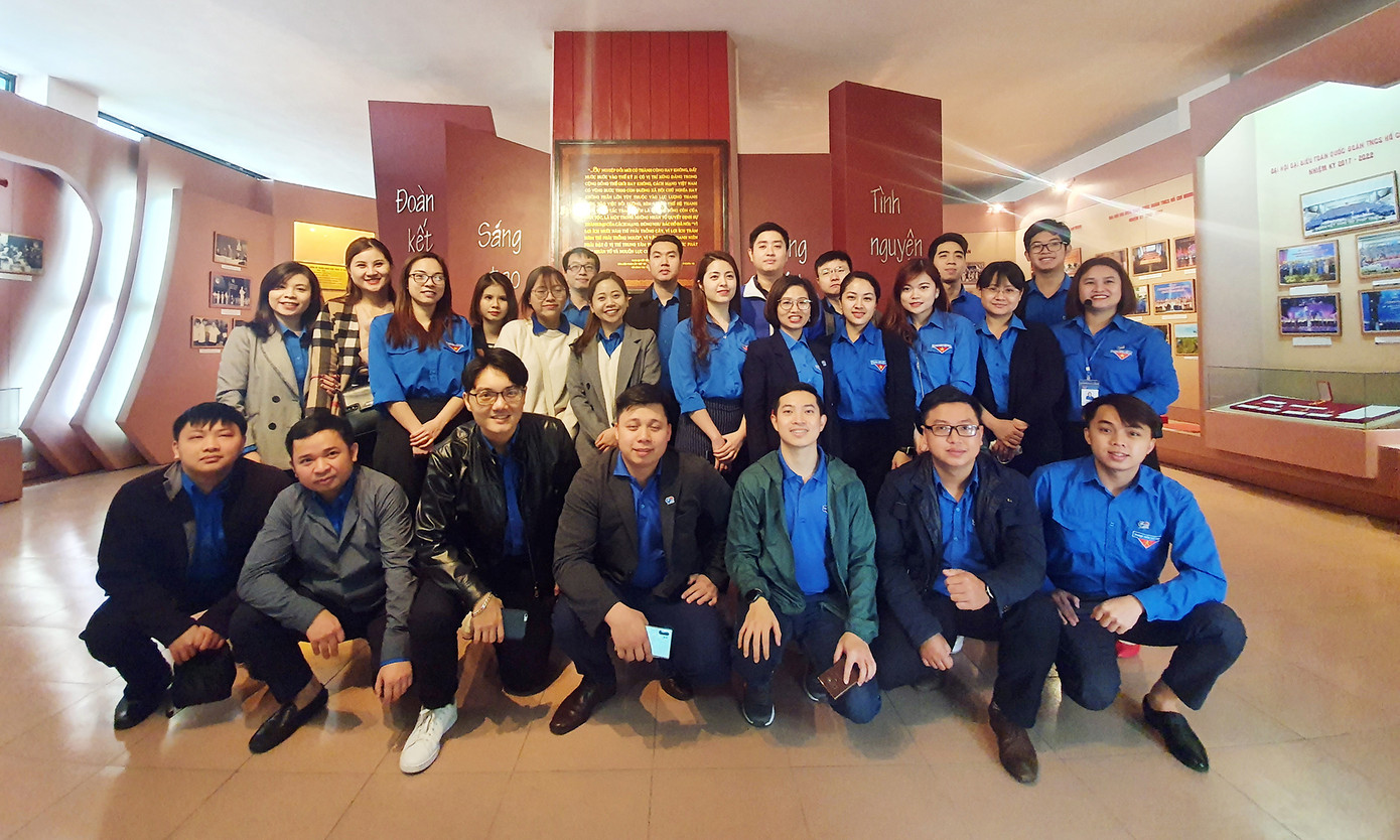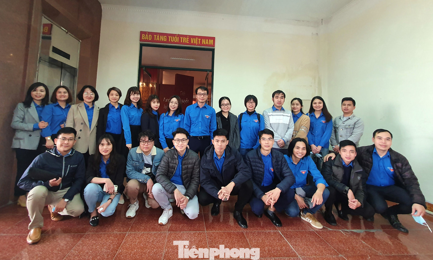 Các đoàn viên, thanh niên các cơ sở đoàn trực thuộc Đoàn cơ quan Trung ương Đoàn chụp ảnh lưu niệm tại Bảo tàng tuổi trẻ Việt Nam.