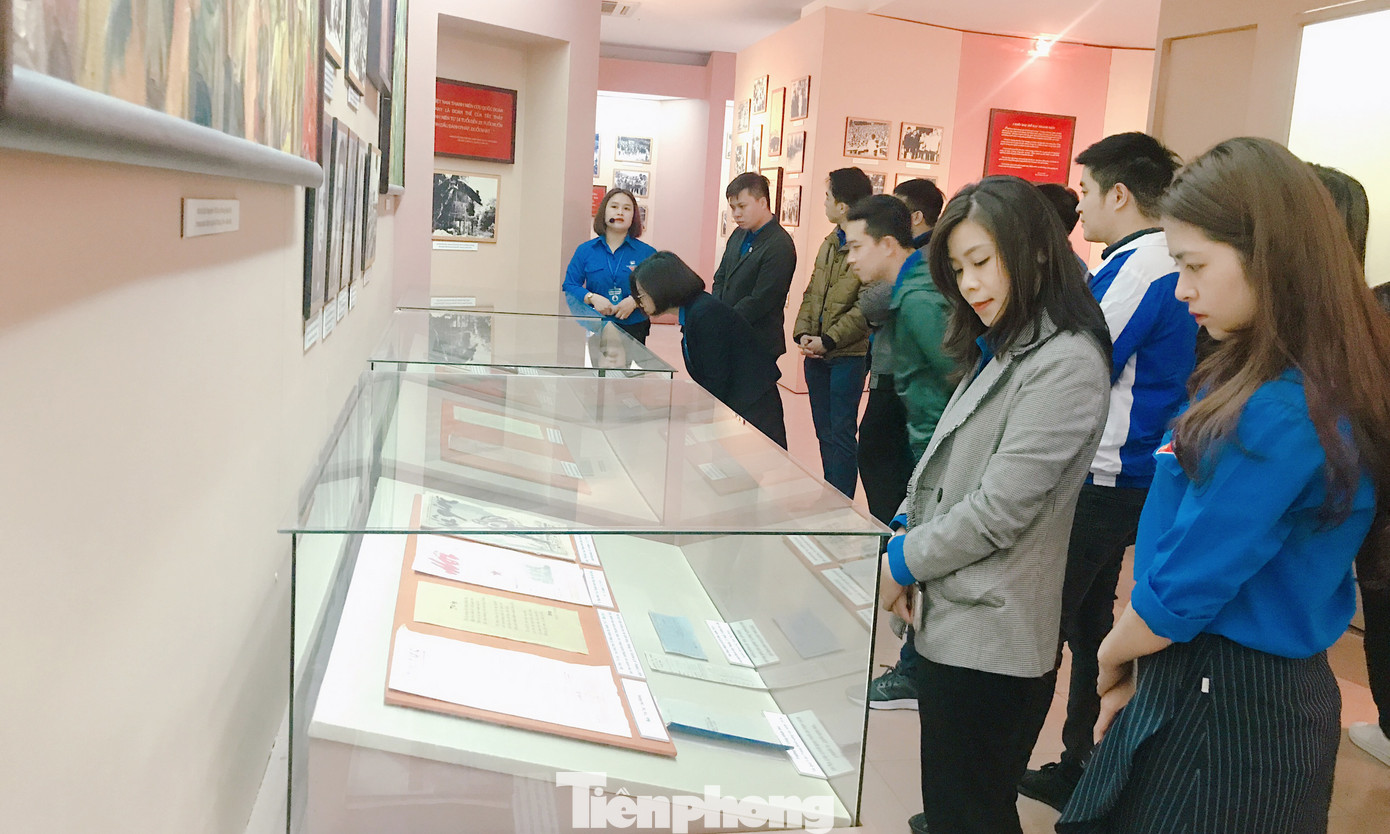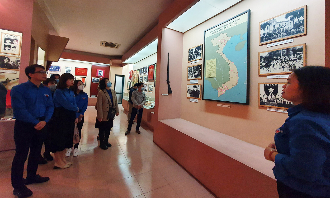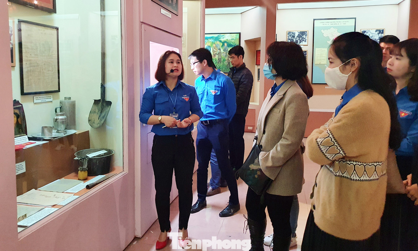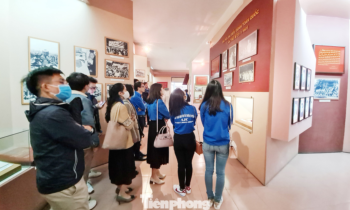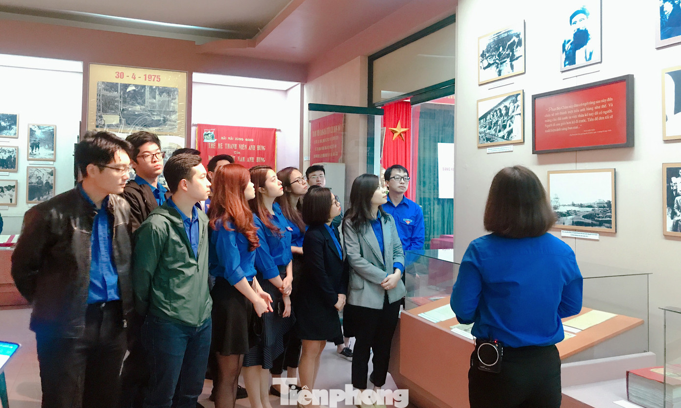 Cán bộ Bảo tàng tuổi trẻ Việt Nam giới thiệu với các đoàn viên, thanh niên các cơ sở đoàn trực thuộc Đoàn cơ quan Trung ương Đoàn về lịch sử tổ chức Đoàn và các kỳ Đại hội Đoàn.