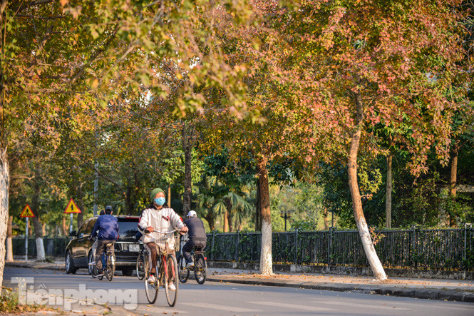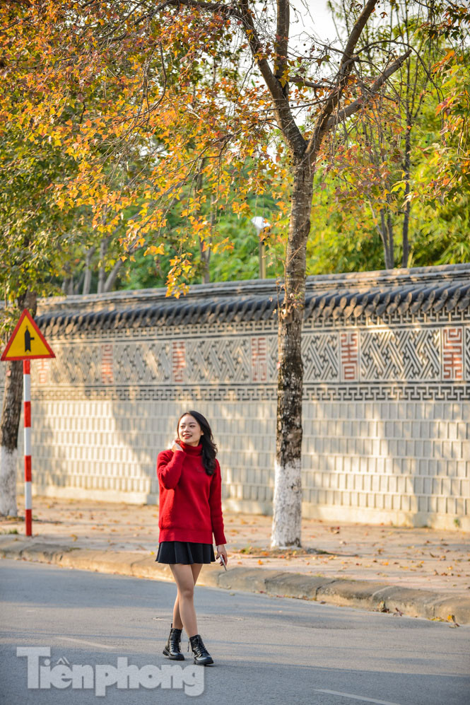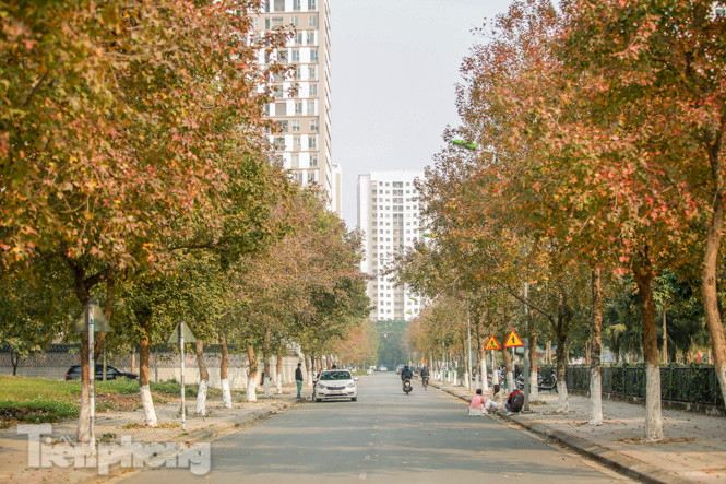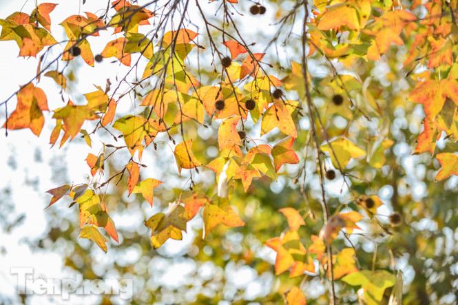 Thời gian gần đây, hàng phong ở khu Ngoại giao đoàn (Bắc Từ Liêm, Hà Nội) đang trong giai đoạn chuyển màu lá khiến khung cảnh nơi đây trở nên tuyệt đẹp như lạc vào xứ sở kim chi.